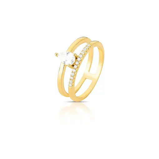 ANEL CURVO COM DOIS CRISTAIS EM NAVETE