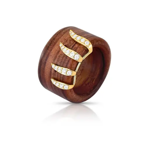 ANEL EM MADEIRA COM ZIRCÔNIAS