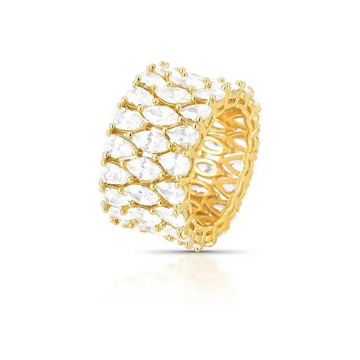 ANEL CURVO COM CRISTAIS EM GOTA E NAVETE