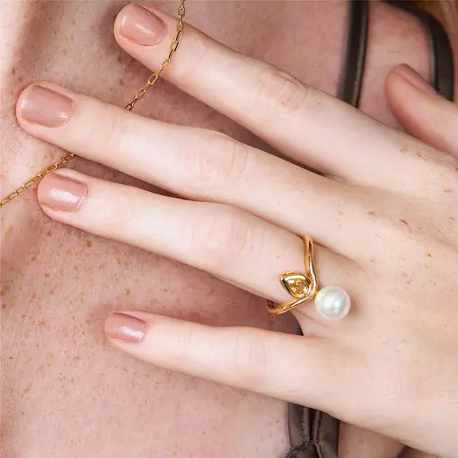 ANEL COM ABERTURA E DUAS PÉROLAS SHELL