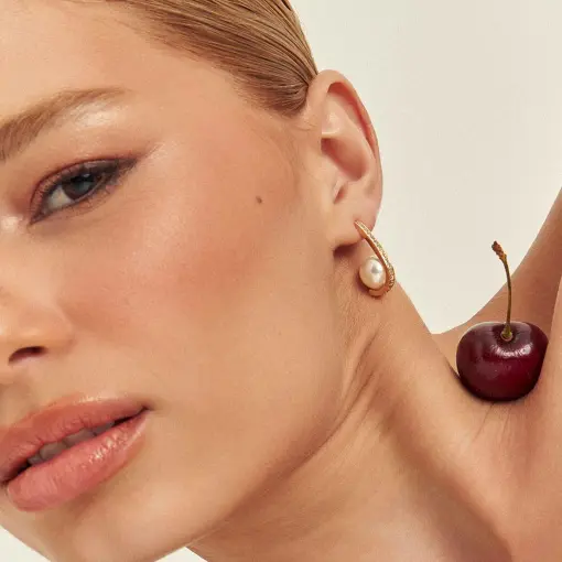 BRINCO REDONDO DE PÉROLA COM ZIRCÔNIAS