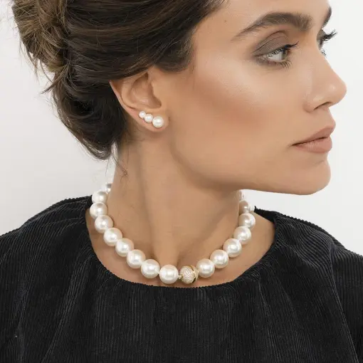 MEIA ARGOLA COM PÉROLAS SHELL INTERCALADAS