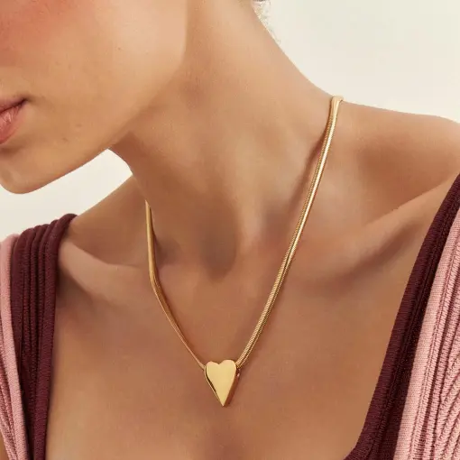 COLAR COM PINGENTE DE CORAÇÃO LISO EM ESTEIRA LAMINADA