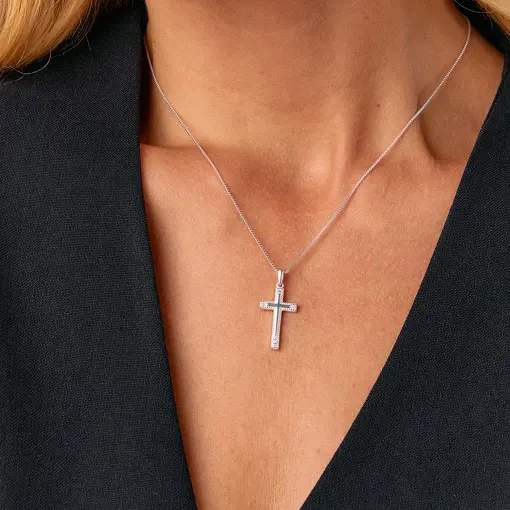 COLAR COM PINGENTE DE CRUZ LISO E ZIRCÔNIAS PRATA LISA