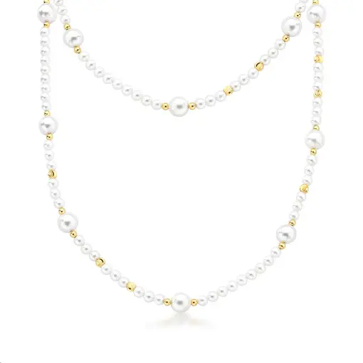 COLAR COM PÉROLAS SHELL E ESFERAS LISAS BANHADO A OURO
