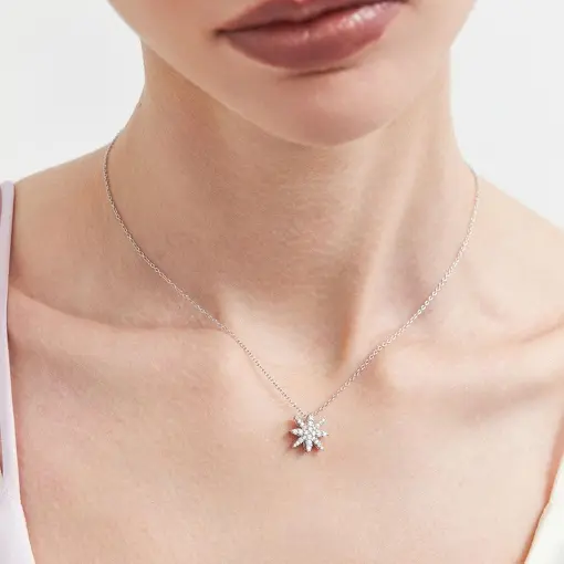 COLAR COM PINGENTE DE ESTRELA EM ZIRCÔNIAS PRATA RODINADA