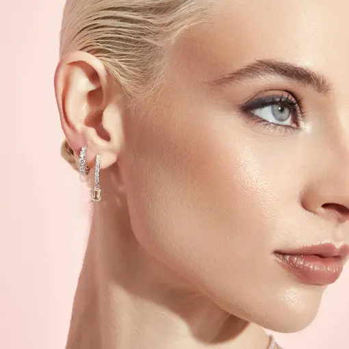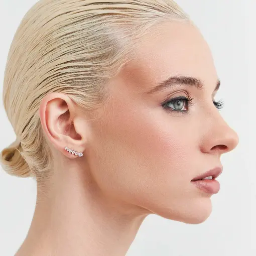 BRINCO EAR CUFF COM CRISTAIS REDONDOS E ZIRCÔNIA PRATA RODINADA