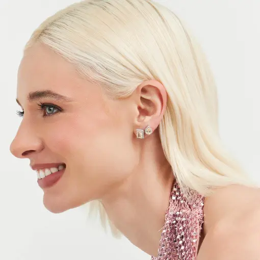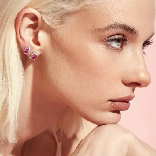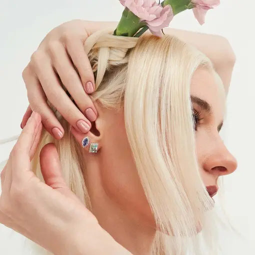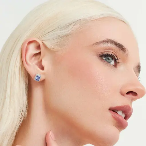 BRINCO COM CRISTAL RETANGULAR E ZIRCÔNIAS PRATA RODINADA