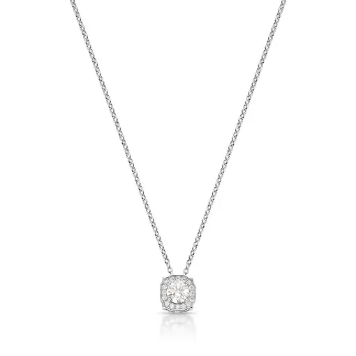 COLAR COM PINGENTE QUADRADO PEDRA MOISSANITE 5MM PRATA RODINADA