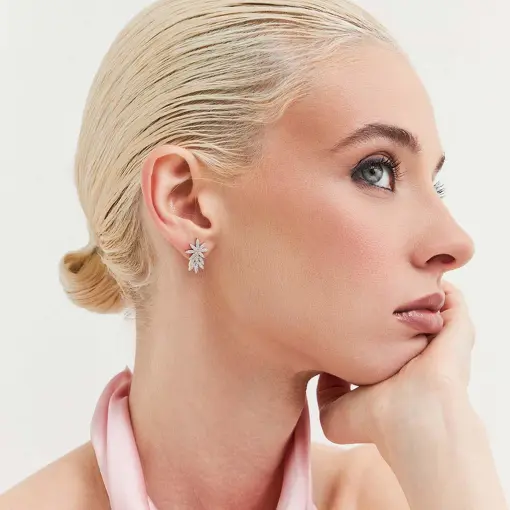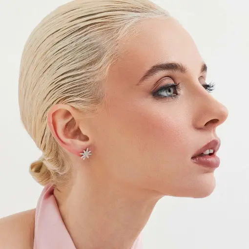 BRINCO DE FLOR VAZADO COM ZIRCÔNIAS PRATA RODINADA