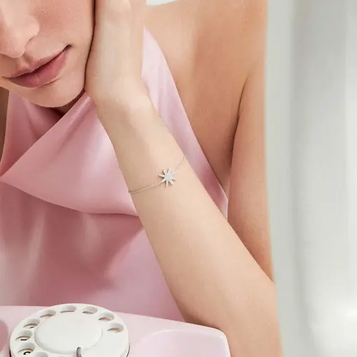 PULSEIRA DE ESTRELA COM ZIRCÔNIAS PRATA RODINADA