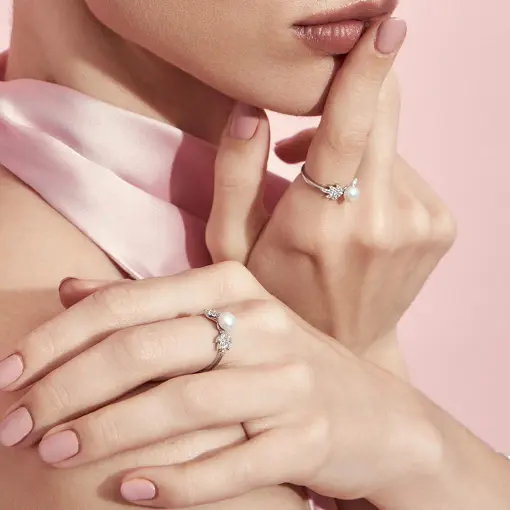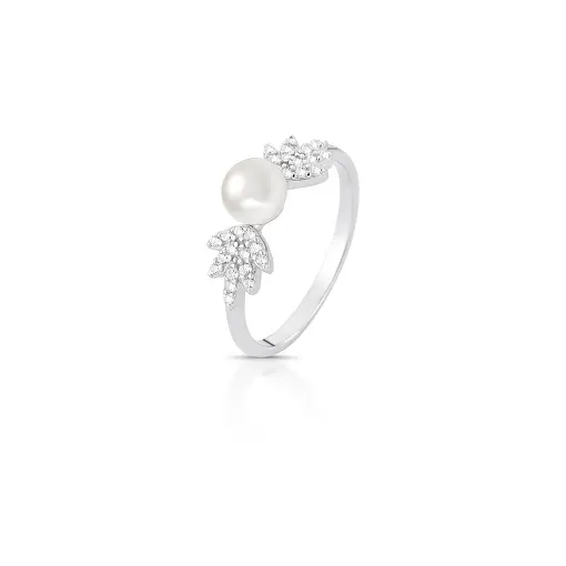 ANEL DE FOLHA COM PÉROLA ÁGUA DOCE E ZIRCÔNIAS PRATA RODINADA