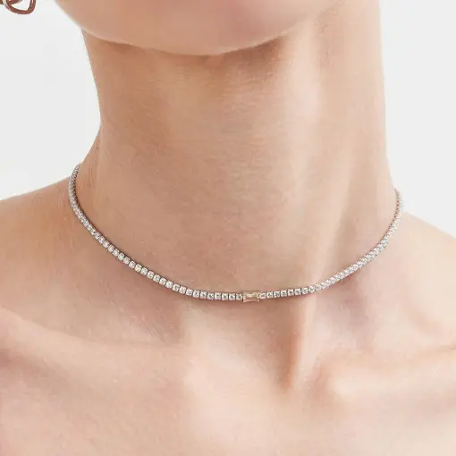 COLAR RIVIERA COM CRISTAIS REDONDOS E RETANGULAR PRATA RODINADA