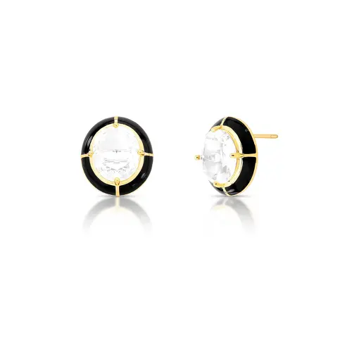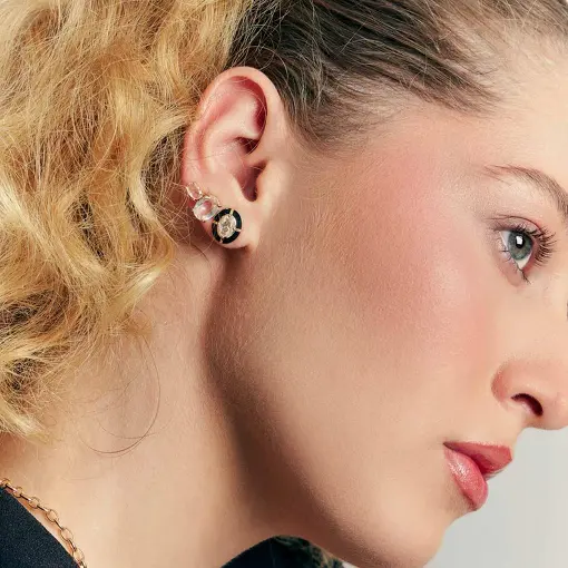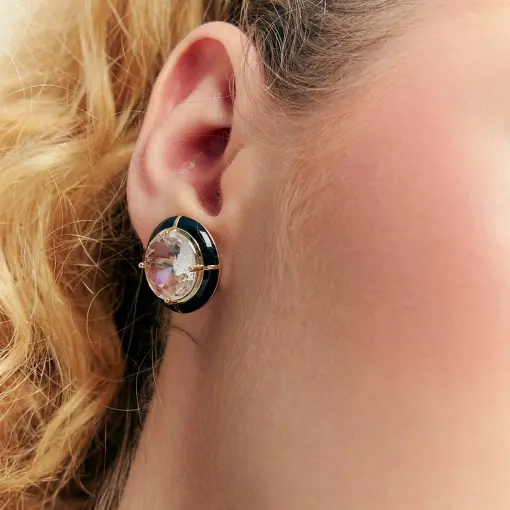 BRINCO EAR CUFF COM CRISTAL OVAL E ESMALTADO BANHADO A OURO