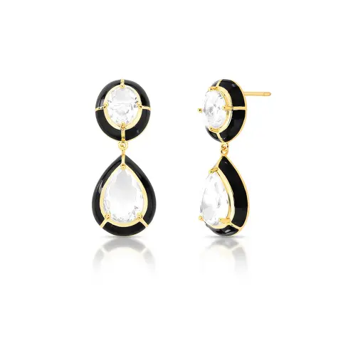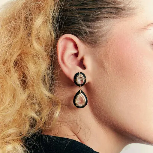 BRINCO COM CRISTAL DE GOTA E OVAL ESMALTADO EM PÊNDULO