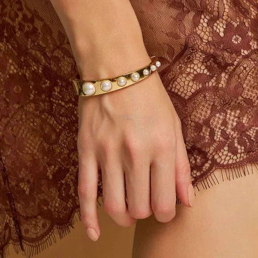 BRINCO TRÊS VOLTAS CURVO VAZADO E PÉROLA SHELL