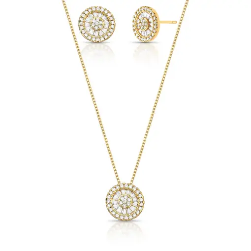 CONJUNTO BRINCO E COLAR COM CRISTAL REDONDO E ZIRCÔNIAS