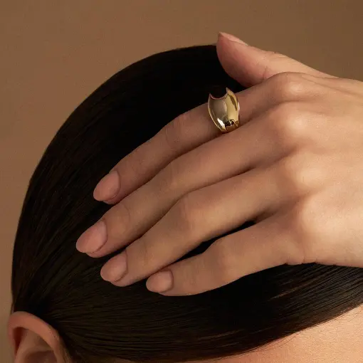 ANEL ABAULADO E VAZADO COM DUAS GOTAS EM CRISTAL