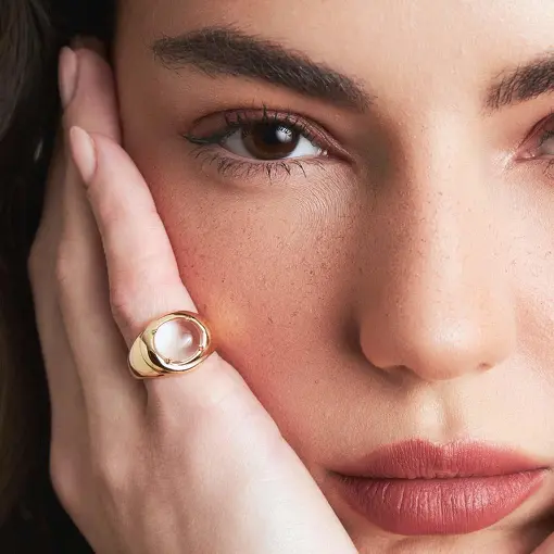 ANEL DEDO MÍNIMO ABAULADO COM CRISTAL OVAL