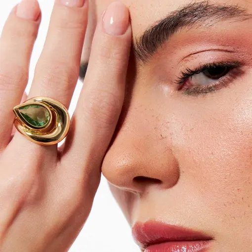 ANEL ABAULADO E VAZADO COM GOTA EM CRISTAL