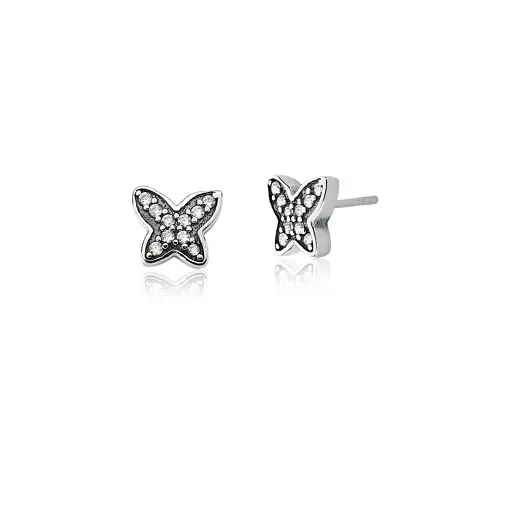 BRINCO DE BORBOLETA COM ZIRCÔNIAS BRANCAS PRATA ENVELHECIDA
