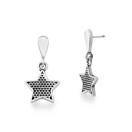 BRINCO PÊNDULO DE ESTRELA VAZADA E LISA EM PRATA ENVELHECIDA
